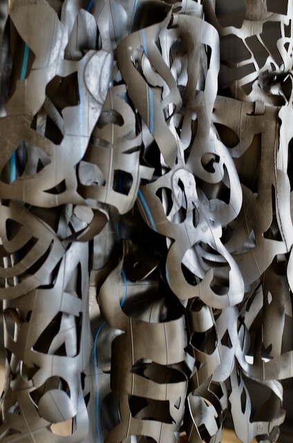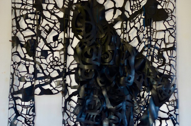 Rubber is a material that keeps the world in motion. Few places have been more defined by this material than the Democratic Republic of the Congo. Yet the violent colonial extraction of rubber is merely one history. Using discarded tyre inner tubes and tread, Kyungu Mwilambwe, works to make contemporary commentary on our globalised world.